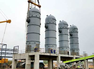 羰基化反應(yīng)器共4臺(tái),單臺(tái)設(shè)備重約436噸,合計(jì)約1744噸。自3月25日首臺(tái)反應(yīng)器就位安裝,僅歷時(shí)9天,4臺(tái)反應(yīng)器全部完成安裝就位。