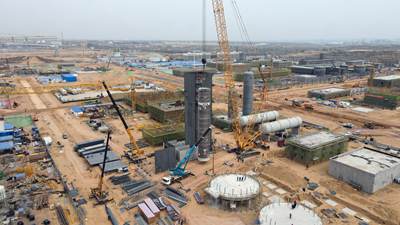 值得一提的是,項(xiàng)目核心乙醇裝置長周期設(shè)備陸續(xù)交貨到場安裝就位;土建施工總體完成73%,主要建筑物開始裝修,落地設(shè)備基礎(chǔ)交付安裝,壓縮機(jī)廠房及其基礎(chǔ)施工正在按計(jì)劃進(jìn)行;裝置安裝工作全面推進(jìn),7臺(tái)反應(yīng)器全部安裝完成,核心塔器正進(jìn)行現(xiàn)場安裝攻堅(jiān)。與此同時(shí),熱動(dòng)力站也在快馬加鞭的進(jìn)行,目前鍋爐汽輪機(jī)房主體結(jié)構(gòu)施工和裝修正已同步啟動(dòng),1號(hào)鍋爐鋼結(jié)構(gòu)安裝完成,鍋爐及附件基本安裝完畢;2號(hào)、3號(hào)鍋爐正進(jìn)行鍋爐鋼結(jié)構(gòu)安裝,全力為今年11月鍋爐點(diǎn)火做好準(zhǔn)備。