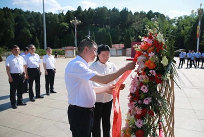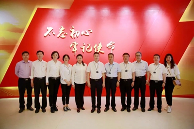 參觀結束后,全體人員來到五大書記銅像前,莊嚴肅立,奏唱國歌。公司黨委書記、董事長許緘濤,黨委副書記、總經理田偉共同向五大書記雕像敬獻花籃并行鞠躬禮。在田偉帶領下,大家面向黨旗,重溫入黨誓詞,一同感受毛澤東等老一輩革命家胸懷天下、一心為民的家國情懷。