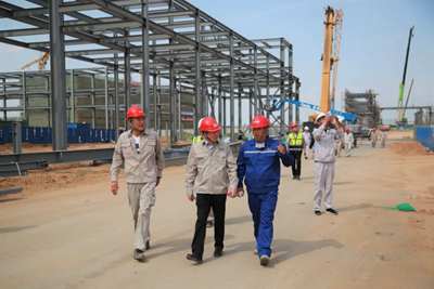 許緘濤檢查了項目現(xiàn)場,聽取了項目關(guān)于安全、質(zhì)量、進(jìn)度等方面工作情況匯報。他指出,榆神能化項目是延長石油集團(tuán)及我公司的重點工程,建設(shè)情況受到廣泛關(guān)注。公司對項目建設(shè)情況高度重視,項目全員要提高認(rèn)識,形成共識,按照施工計劃高標(biāo)準(zhǔn)完成任務(wù);緊盯“10?30鍋爐具備點火條件”節(jié)點目標(biāo),強(qiáng)化時間觀念和效率意識,搶進(jìn)度、抓質(zhì)量、保安全,確保項目建設(shè)重大節(jié)點順利實現(xiàn)。同時,他對不畏酷暑、奮戰(zhàn)在一線的員工表示慰問,并叮囑大家要勞逸結(jié)合,合理安排作息時間,安全生產(chǎn),平安度夏。