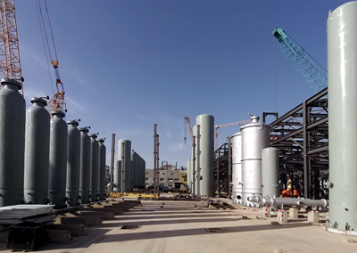 TSA/PSA成套包設備共35臺,主要設備有吸附塔、緩沖罐,此單元用于提純合成氣中的CO和H2,用壓縮機增壓后送入甲醇和乙醇裝置作為原料氣使用。