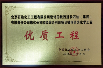 公司負(fù)責(zé)設(shè)計(jì)的輕烴項(xiàng)目獲優(yōu)質(zhì)工程獎(jiǎng)
