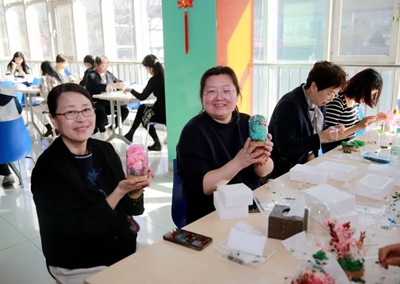 為增強(qiáng)慶祝活動(dòng)的趣味性、挑戰(zhàn)性、協(xié)作性,組織開展手工制作“永生花”體驗(yàn)活動(dòng)。活動(dòng)中,工作人員提前將材料進(jìn)行分類準(zhǔn)備好,并詳細(xì)講解“永生花”的制作流程和技巧。大家邊學(xué)邊交流經(jīng)驗(yàn),以塑刀為針,以膠水為線,紛紛動(dòng)起手來,傾力展示自己豐富的想象力和創(chuàng)造力,將工作中的細(xì)心、專心、耐心投入到“永生花”的制作上。經(jīng)過個(gè)把小時(shí),女職工們制作出了一朵朵精美的“永生花”,看著自己親手制作的作品,大家臉上洋溢著滿滿的成就感和幸福感。火熱的氛圍,也將此次“三八”節(jié)活動(dòng)推向了高潮。
