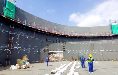 許緘濤強調,節假日期間項目組要切實提高安全保障意識,協調好各參建方緊密配合,形成強大合力,加強統籌調度,把握好各個環節,科學合理安排工期,加強現場質量安全管理,加快推進施工進度,確保工程質量和進度實施到位。他要求,一是加強節日期間安全隱患排查及吊裝安全風險管控;二是加強焊接質量管控,特別是罐體焊接和大體積混凝土澆筑;三是全力組織統籌好按計劃完成2024年度各項節點任務;四是靠前服務,積極發揮總包方職責,配合廠外工程實施。