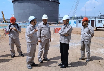 6月20日,北京石油化工工程有限公司黨委書記、董事長許緘濤到公司EPC總承包的延長石油靖邊天然氣儲氣調峰及配套LNG項目調研。強調要進一步加強安全生產工作,確保高質量按時完成各項目標節點,為項目順利驗收打下堅實基礎。公司總經理助理、安全總監楊礫陪同調研。