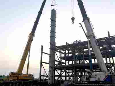 該反應器是乙胺裝置中的最核心設備,此次順利吊裝為反應框架鋼結構、設備收尾創造了有利條件。據項目負責人介紹,項目正按計劃穩步推進,各參建單位也在持續細化工作措施,搶抓施工有利時機,在確保安全質量的前提下,加快施工進度,全力沖刺年度目標任務。
