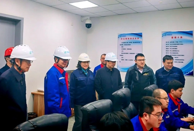 李湘平一行首先來到擠壓造粒車間和裝置中央控制室,對目前裝置的生產和運行情況進行了深入了解,并認真聽取工廠負責人對項目自2024年12月底成功打通工藝全流程以來,裝置持續平穩運行中的各種參數及各項工藝性能指標匯報。截止目前,該中試裝置自運行以來,各項工藝數據均完全滿足設計要求,產出的產品各項性能指標符合市場要求,且過程數據收集連續有效,為后續10萬噸/年EPOE放大裝置工作的順序開展奠定了堅實基礎。