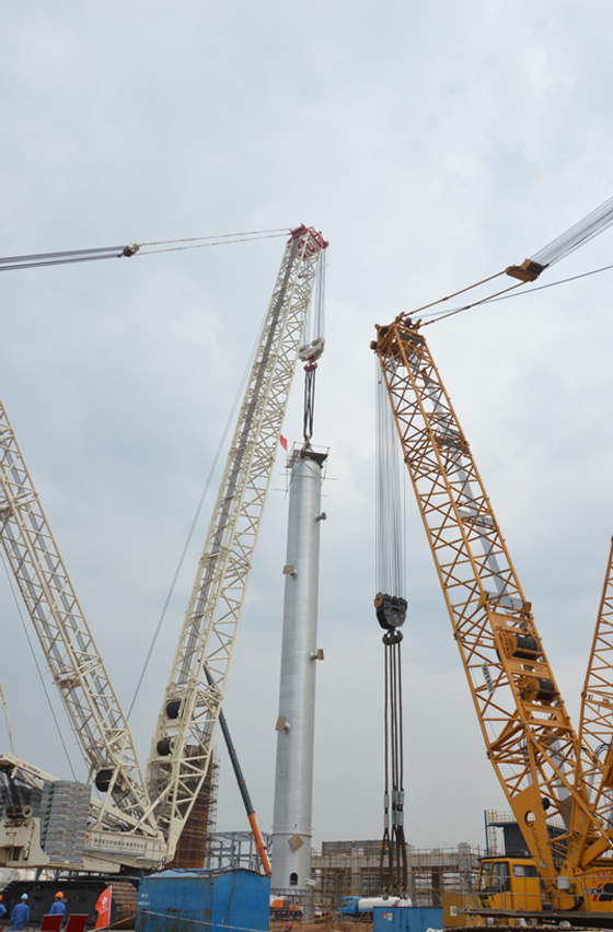 2013年9月3日上午9點18分,712項目加氫裂化固定床反應器吊裝工作正式開始,11點18分反應器吊裝完成,用時兩個小時,獲得一次性成功。這次吊裝成功,不僅彰顯著作為項目最核心裝置之一的固定床順利安裝到位,更重要的是我公司駐外項目積攢了豐富的經驗,為今后大型設備安裝工作夯實了堅實的基礎。